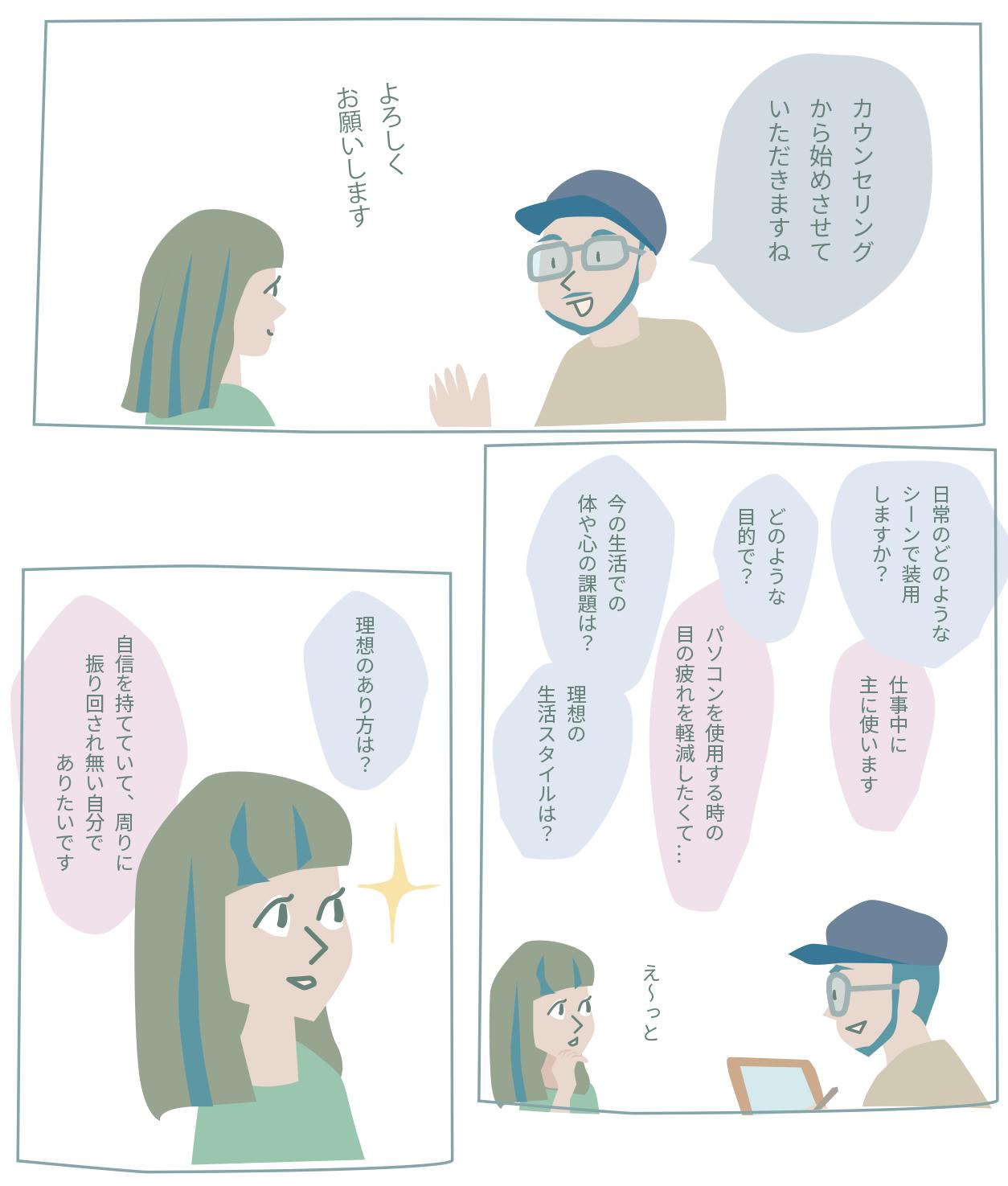 美容院で例えるなら、どんな髪型にしたいか、どんな自分になりたいか、イメージをすり合わせる感じですね。