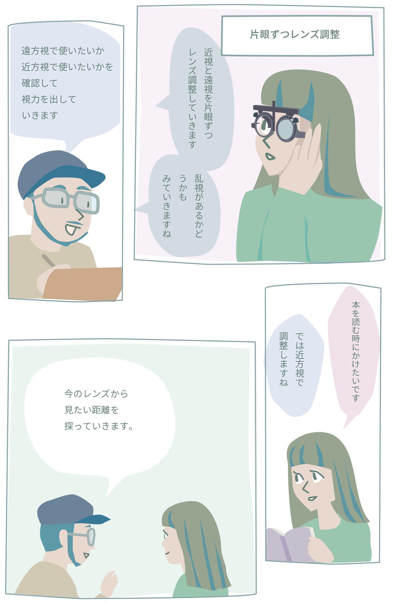細かく目の特性を見て、調整していきます。一人一人細かな違いがありますね。